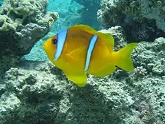 - ↑ Fricke, H. (1974) Öko-Ethologie des monogamen Anemonenfisches Amphiprion bicinctus, Zeitschrift für Tierpsychologie 36: 429-512; cited in: Bshary, R., Wickler, W., and Fricke, H. (2002) Fish cognition: a primate’s eye view. Animal Cognition 5: 1-13.