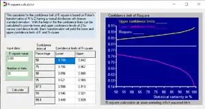 The application of Fisher's transformation can be enhanced using a software calculator as shown in the figure. Assuming that the r-squared value found is 0.80, that there are 30 data , and accepting a 90% confidence interval, the r-squared value in another random sample from the same population may range from 0.588 to 0.921. When r-squared is outside this range, the population is considered to be different. However, if a certain data set is analysed with two different regression models while the first model yields r-squared = 0.80 and the second r-squared is 0.49, one may conclude that the second model is insignificant as the value 0.49 is below the critical value 0.588.