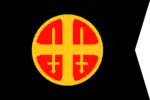 2007 – currentFlag of the Kven peopleThe flag was designed by the Swedish artist Bengt Johansson-Kÿrö. The flag shows a sun-rose, which is a common motif found on objects in Kvenland.