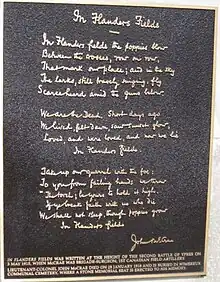 The memorial plaque to the poem "In Flanders Fields"