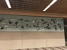Flight Patterns was again removed during the airport's planned expansion in 2015–2016, and was temporarily displayed at the David Joyce Gallery, Building 19 on the campus of Lane Community College.[2][8] The airport, in consultation with Joyce's widow Kacey Joyce, considered whether to permanently remove the artwork and display it instead at the college.[9] Upon learning that it might not be re-installed at the Eugene Airport, Eugene's then-Mayor Kitty Piercy said that the "flying people" are "iconic and part of our art history".[9]