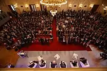 The annual Forum 2000 Conference, along with other events organized by the Forum 2000 Foundation, are held in Prague. The mission of these conferences is to “map the globalization process and to note its positive results as well as the perils encountered by an increasingly interconnected world.”[4] Since 1997, the Forum 2000 Conferences have attracted a number of prominent thought leaders, Nobel laureates, former and acting politicians, business leaders and other individuals, whose common denominative is experience with bearing responsibility. Prince Hassan bin Talal, Frederik Willem de Klerk, Bill Clinton, Nicholas Winton, Oscar Arias Sánchez, Dalai Lama, Hans Küng, Shimon Peres, Madeleine Albright, Mário Soares, Hanna Suchocká, Sergey Kovalyov, Jorge Castaneda, Alyaksandar Milinkevich, and Wole Soyinka are just a few of those who have attended the Forum 2000 events.