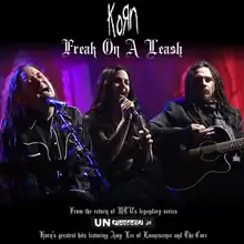 "Freak on a Leash" is a song by the American nu metal band Korn, featured on the group's 1998 studio album, Follow the Leader. After Follow the Leader's release, the song was released as a single on February 25, 1999, and since then, it has been re-released over ten times. The song uses dissonance, distortion, various guitar effects, and a heavy, aggressive style.[7]