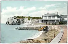 Freshwater Bay, c.1910. The large building in the foreground is The Albion, a Victorian hotel built in response to an influx in popularity
