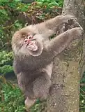 The most commonly found primates in China are macaques, which have oversized cheeks to store food and live in large troops. The range of the rhesus or common macaque extends from as far north as the Taihang Mountains of Shanxi and down to Hainan.[12] Tibetan macaques are often seen at tourist sites such as Mount Emei and Huangshan. Stump-tailed macaques have distinct red faces and live throughout southern China. The Formosan rock macaque is endemic to Taiwan. Assam macaques are found in higher elevation areas of southern Tibet and the Southwest, and the northern pig-tailed macaque in Yunnan. Macaques are Class I protected species in China but their numbers have fallen sharply. Monkey brain is a delicacy in parts of Guangxi and Guangdong, and macaques are often hunted for food.[13] The Monpa and Lhoba people of southern Tibet eat Assam macaques.[13] From 1998 to 2004, the number of rhesus macaques in China fell from 254,000 to about 77,000.[13] Over the same period, the Tibetan macaque population fell by 83% from about 100,000 to only about 17,000.[13]