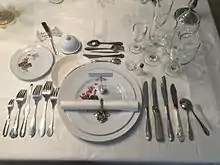 ![]() A European/American 13 course table setting | |