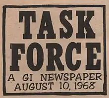 The GI Underground Press was an underground press movement that emerged among the United States military during the Vietnam War. These were newspapers and newsletters produced without official military approval or acceptance; often furtively distributed under the eyes of "the brass".[1] They were overwhelmingly antiwar and most were anti-military, which tended to infuriate the military command and often resulted in swift retaliation and punishment. Mainly written by rank-and-file active duty or recently discharged GIs, AWOLs and deserters, these publications were intended for their peers and spoke the language and aired the complaints of their audience. They became an integral and powerful element of the larger antiwar, radical and revolutionary movements during those years.[2]:54-8wa[3] This is a history largely ignored and even hidden in the retelling of the U.S. military's role in the Vietnam War.[4]