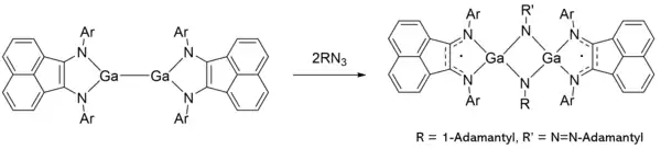 - ↑ Zhang, Yihu; Dodonov, Vladimir A.; Chen, Weixing; Zhang, Shuangshuang; Roesky, Peter W.; Zhao, Yanxia; Fedushkin, Igor L.; Yang, Xiao-Juan (2023-04-24). "Reactions of Low-Valent Gallium Species with Organic Azides: Formation of Imido-, Azoimido-, and Tetrazene Complexes". Inorganic Chemistry. 62 (16): 6288–6296. doi:10.1021/acs.inorgchem.2c04297. ISSN 0020-1669. PMID 37036292. S2CID 258050338.