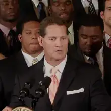 Eugene C. Chizik Jr.[1] (born December 28, 1961) is an American football coach who was most recently the defensive coordinator and Assistant Head Coach for Defense at North Carolina.[2][3] A veteran of the coaching ranks, Chizik previously was UNC's defensive coordinator for the 2015 and 2016 seasons, and served as the head coach of the Auburn football team from 2009 until the end of the 2012 season.[4] Chizik's 2010 Auburn Tigers football team completed a 14–0 season with a victory over Oregon in the BCS National Championship Game, and quarterback Cam Newton won the Heisman Trophy. Chizik played college football at the University of Florida in 1981 for head coach Charley Pell.[5]