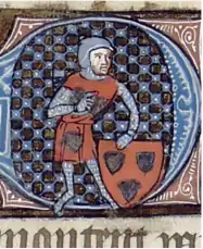 Geoffroi de Charny from a historiated initial in the manuscript of his works preserved in the Biblioteca Nacional, Madrid (Madrid MS. 9270, fol.98r)