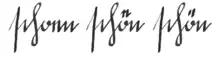 - ↑ In medieval manuscripts, other digraphs could also be written using superscripts: in bluome ("flower"), for example, the ⟨o⟩ was frequently placed above the ⟨u⟩, although this letter ⟨ů⟩ survives now only in Czech. Compare also the development of the tilde as a superscript ⟨n⟩.