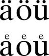 Unusual umlaut designs are sometimes also created for graphic design purposes, such as to fit an umlaut into tightly-spaced lines of text.[12] It may include umlauts placed vertically or inside the body of the letter.[13][14][15]