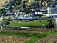 The landscape surrounding the city consists of rolling hills dotted with conventional farm buildings and livestock as well as row crop farming systems. Some suburban-style subdivisions lie a short distance to the south.