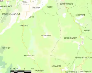 Glorianes is located in the canton of Le Canigou and in the arrondissement of Prades.