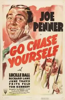 Go Chase Yourself is a 1938 American comedy film directed by Edward F. Cline and written by Paul Yawitz and Bert Granet. The film stars Joe Penner, Lucille Ball, Richard Lane, June Travis, Fritz Feld and Tom Kennedy. The film was released on April 22, 1938, by RKO Pictures.[1][2][3]