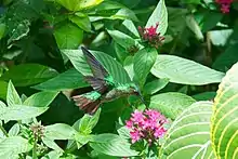 - ↑ McGuire, J.; Witt, C.; Remsen, J.V.; Corl, A.; Rabosky, D.; Altshuler, D.; Dudley, R. (2014). "Molecular phylogenetics and the diversification of hummingbirds". Current Biology. 24 (8): 910–916. doi:10.1016/j.cub.2014.03.016. PMID 24704078.