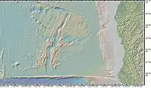 The Gorda Ridge (41°36'19.6"N 127°22'03.1"W), aka Gorda Ridges tectonic spreading center, is located roughly 200 kilometres (120 mi) off the northern coast of California and southern Oregon. Running NE – SW it is roughly 300 kilometres (190 mi) in length.[1] The ridge is broken into three segments;[2] the northern ridge, central ridge, and the southern ridge, which contains the Escanaba Trough.