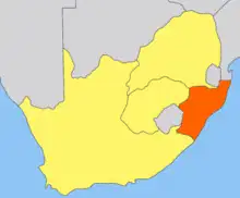 Map of the Natal Colony (orange) within South Africa (yellow).
