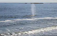 The Sea of Japan was once thought not to have been a migration route, until several entanglements were recorded.[119] Any records of the species had not been confirmed since after 1921 on Kyushu.[107] However, there were numerous records of whales along the Genkai Sea off Yamaguchi Prefecture,[120] in Ine Bay in the Gulf of Wakasa, and in Tsushima. Gray whales, along with other species such as right whales and Baird's beaked whales, were common features off the north eastern coast of Hokkaido near Teshio, Ishikari Bay near Otaru, the Shakotan Peninsula, and islands in the La Pérouse Strait such as Rebun Island and Rishiri Island. These areas may also have included feeding grounds.[107] There are shallow, muddy areas favorable for feeding whales off Shiretoko, such as at Shibetsu, the Notsuke Peninsula, Cape Ochiishi on Nemuro Peninsula, Mutsu Bay,[121] along the Tottori Sand Dunes, in the Suou-nada Sea, and Ōmura Bay.