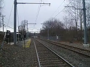Great Notch station was a small New Jersey Transit facility in the Great Notch section of Little Falls, New Jersey. The station was served seven times a day, three inbound morning trains to Hoboken Terminal and four outbound evening trains from Hoboken by the Montclair-Boonton Line from Monday to Friday. Located at the intersection of Notch Road and Long Hill Road, it was the second of three stations in Little Falls, the other two being Montclair State University and Little Falls and, after electrification, was the first on the line to be strictly served by diesel trains. However, most trains bypassed this station and continued on to Little Falls (westbound) and Montclair State University (eastbound). The station was served by a double track which ended west of the station. The last trains stopped at the station on January 15, 2010, at 7:41pm.