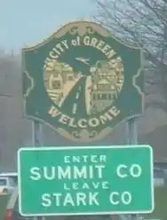 Green is a city in southeastern Summit County, Ohio, United States. The population was 27,475 at the 2020 census. It is a suburban community between Akron and Canton and is part of the Akron metropolitan area.