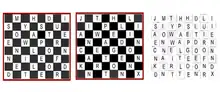 The encipherer begins with the board in the wrong position for chess. Each successive letter of the message is written in a single square. If the message is written vertically, it is taken off horizontally and vice versa.