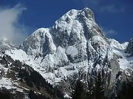 The Gummfluh is a mountain in the western Bernese Alps, located on the border between the Swiss cantons of Vaud and Berne. It is the highest peak in the chain of mountains on the south side of the Pays d'Enhaut and it lies approximately halfway between Château d'Oex and Gstaad. The northern slopes form part of the large nature reserve of La Pierreuse.