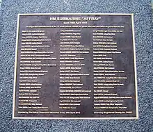 Plaque in Gosport for the submarine Affray, 2012