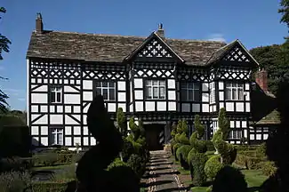 The oldest building in Handforth is Handforth Hall, a typical Tudor-styled black and white timber building built by Sir Urian Brereton in 1562, also originally named "Honford Hall" after the de Honfords. Sir Urian Brereton, the escheator of Cheshire and one of the privy grooms to King Henry VIII, died at Handforth Hall on 19 March 1577, and is thought to be buried in one of the chapels of St Mary's Church, Cheadle. In the church's south chapel, two recumbent effigies depicted in alabaster are thought to represent members of the Hondford family; Sir John, who died in 1461, and his son, also named John. A third, depicted in sandstone, represents Sir Thomas Brereton, who died in 1673.[9] The most famous resident of Handforth is Sir Urian's great grandson, the Parliamentary General Sir William Brereton, 1st Baronet, who fought in the English Civil War.[10]