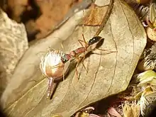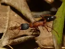 Harpegnathos saltator, sometimes called the Indian jumping ant or Jerdon's jumping ant, is a species of ant found in India. They have long mandibles and have the ability to leap a few inches.[1] They are large-eyed and active predators that hunt mainly in the early morning. The colonies are small and the difference between workers and queens is very slight.