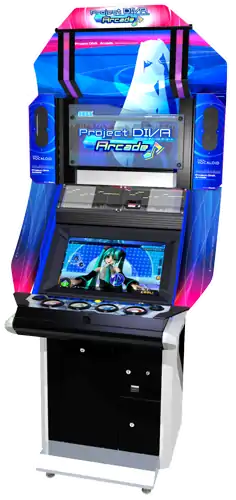 Hatsune Miku: Project DIVA Arcade (初音ミク Project DIVA Arcade) is a 2010 arcade rhythm game created by Sega and Crypton Future Media for arcade machines. The game is a port of the 2009 video game, Hatsune Miku: Project DIVA, with updated visuals and was released on June 23, 2010 in Japan with limited international release in countries such as Singapore. Like the original the game primarily makes use of Vocaloids, a series of singing synthesizer software, and the songs created using these Vocaloids, most notably, the virtual diva Hatsune Miku.
