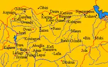 Hausa Kingdoms, also known as Hausa Kingdom or Hausaland,[1] was a collection of states started by the Hausa people, situated between the Niger River and Lake Chad (modern day northern Nigeria). Hausaland lay between the Western Sudanic kingdoms of Ancient Ghana, Mali and Songhai and the Eastern Sudanic kingdoms of Kanem-Bornu. Hausaland took shape as a political and cultural region during the first millennium CE as a result of the westward expansion of Hausa peoples. They arrived to Hausaland when the terrain was converting from woodlands to savannah. They started cultivating grains, which led to a denser peasant population. They had a common language, laws and customs. The Hausa were known for fishing, hunting, agriculture, salt-mining, and blacksmithing.