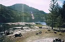 The gold rush of 1849 on the South Fork of the American River resulted in establishment of Sierra foothill towns of Auburn, Placerville, Nevada City and Georgetown. The gold rush did not intrude into the higher elevations of the Sierra Nevada range, but the water and timber needs of these towns did intrude into the upper elevations. In one case in 1873 the privately owned, California Water Company[11] employed a scheme to dam Loon Lake to the south of Hell Hole and then sluice the water closer to Georgetown where it could be used by residents and farmers.[12]