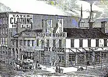Smart Block, Detroit, where Howard and Wadhams had a dry goods store. The image is c. 1845, after Howard and Wadhams had moved on.