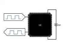 Input stimulus for toggling the internal nodes of the device. Responsive output tests IC performance.