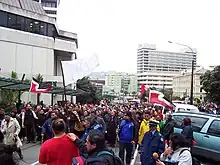 A hīkoi is a walk or march, and especially a protest march or parade, in New Zealand. The word comes from the Māori language, and often implies a long journey taking many days or weeks.[1][2] The most famous hīkoi was the 1975 Māori Land March, on which supporters and protestors travelled the length of the North Island, from Te Hāpua to Parliament in Wellington, organised by Whina Cooper.[3]