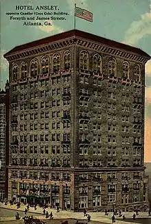 The Hotel Ansley was a hotel that occupied the south side of Williams Street between Forsyth and Fairlie streets in the Fairlie-Poplar district of Downtown Atlanta. It was built in 1913 by Jerome B. Pound of Chattanooga, TN and named for Edwin P. Ansley, developer of the Ansley Park neighborhood; an estimated 5000 guests attended the opening of the $1,000,000 property. The property was originally managed by M.I. and Frank Harrell.[1]