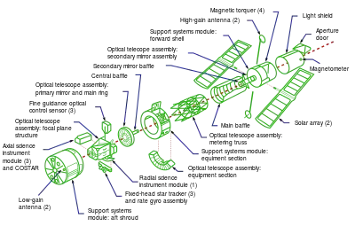 Exploded view of the Hubble Space Telescope