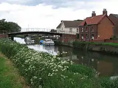 The bridge over the river was the cause of a long-running disagreement between the commissioners of the Driffield Navigation and Beverley Corporation. The small opening in the stone structure restricted boats wanting to proceed up-river to the Driffield Navigation, and the commissioners attempted to obtain powers to replace it in 1777, but were thwarted by Beverley Corporation, who thought that a swing bridge would make access from the town to Holderness more difficult.[1] In November 1799, the commissioners met to consider ways "for avoiding the very great losses, injuries and inconveniences sustained by this Navigation, from the stoppage of the Vessels (using the said Navigation) at Hull Bridge."[2] Despite Beverley saying that they would never alter the bridge, an agreement was eventually reached in 1801, and an Act of Parliament was obtained in July, to authorise the work. Half of the cost of £500 was paid by Richard Bethell, the owner of the Leven Canal, on the understanding that tolls for passing under the bridge would be reduced, and the new crossing was completed by April 1804.[3]