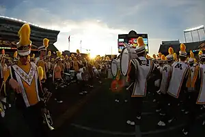 The stadium replaced Northrop Auditorium as the home of the University of Minnesota Marching Band, providing it with direct access to the stadium field and new storage, rehearsal, locker room, and office facilities. The stadium has been host to the DCI Minnesota[96] Drum & Bugle Corps competition sponsored by Drum Corps International and hosted by Minnesota Brass. The first competition, held on July 18, 2010, was cancelled during the show due to the touchdown of a nearby tornado.[97] In 2011, the competition was won by the Cavaliers,[98] and in 2012 was won by the Blue Devils. The stadium is currently home to the Drum Corps International Minnesota event, taking place in mid-July each year since 2010.[99]