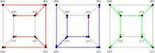 -dimensional hypercube is a network topology for parallel computers with processing elements. The topology allows for an efficient implementation of some basic communication primitives such as Broadcast, All-Reduce, and Prefix sum.[1] The processing elements are numbered through . Each processing element is adjacent to processing elements whose numbers differ in one and only one bit. The algorithms described in this page utilize this structure efficiently.