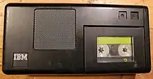 In 1979 IBM announced a mini-cassettte dictation recorder called the IBM Executive Recorder, manufactured by a third party in Japan. It weighs 10 oz (280 g) and can record 30 minutes. It can also be used as a transcriber with an optional foot-pedal, headset and power adapter.[23] The sound quality is poor compared to competing micro-cassette machines and it is incompatible with either IBM's magnetic belt or 6:5 models. In response to complaints, IBM Austin developed a dual-media transcriber (Model 292) that accepts both the mini-cassette and the 6:5 cartridge.[24]