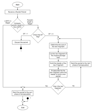 - To set the IP packet size equal or smaller than the directly attached medium and delegate all further fragmentation of packets to routers, meaning that routers decide if the current packet should be re-fragmented or not. This offloads a lot of work on to routers, and can also result in packets being segmented by several IP routers one after another, resulting in very peculiar fragmentation.