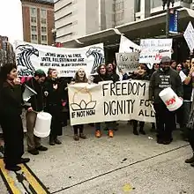 - ↑ Schulberg, Jessica (2017-04-20). "6 Protesters Were Arrested. Only The 2 Arab Muslims Face Misdemeanor Charges". The Huffington Post. Retrieved 2017-06-22.