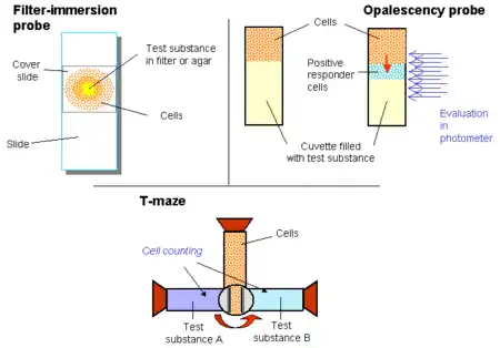 - ↑ Leick V.; Helle J. (1983). "A quantitative assay for ciliate chemotaxis". Anal Biochem. 135 (2): 466–9. doi:10.1016/0003-2697(83)90713-3. PMID 6660520.