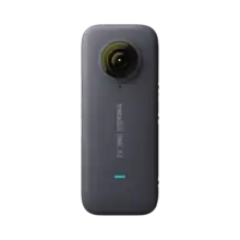 Insta360's action camera lineup includes ONE, ONE X, ONE R, ONE RS, ONE X2, X3, GO, GO 2, and GO 3. The brand's action cameras use 360 technology to create traditional flat video results by "reframing" the 360 video, allowing the editor to pick their angle in post-production.[11] They also all share Insta360's proprietary "FlowState Stabilization" image stabilization technology.[12]