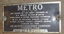 IHC Metro build plate, located above passenger side front window