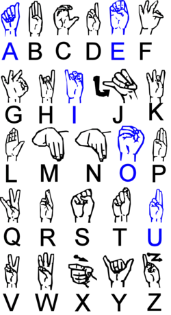 Irish Sign Language (ISL, Irish: Teanga Chomharthaíochta na hÉireann) is the sign language of Ireland, used primarily in the Republic of Ireland. It is also used in Northern Ireland, alongside British Sign Language (BSL). Irish Sign Language is more closely related to French Sign Language (LSF) than to BSL, though it has influence from both languages. It has influenced sign languages in Australia and South Africa, and has little relation to either spoken Irish or English. ISL is unique among sign languages for having different gendered versions due to men and women being taught it at different schools all over Ireland.[2]