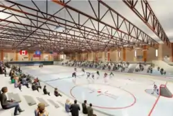 Iron Trail Motors Event Center is an ice arena and Event Center located in the city of Virginia, Minnesota. It was completed in September 2021.[1] The two-story building has a 120,000 square-foot total area and includes two ice rinks, fitness facilities and a 6,400-square-foot ballroom for weddings. It can also be used as a venue center for concerts.[1] The arena offers skating lessons, open skating and open hockey.[2] The arena is the home rink for the Rock Ridge Wolverines Hockey.[3] The Rock Ridge Hockey Association coordinates the youth hockey program.