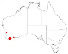 This isopogon grows in heath or shrubland in the Stirling Range and near Mount Barker in the south-west of Western Australia.[2][3]